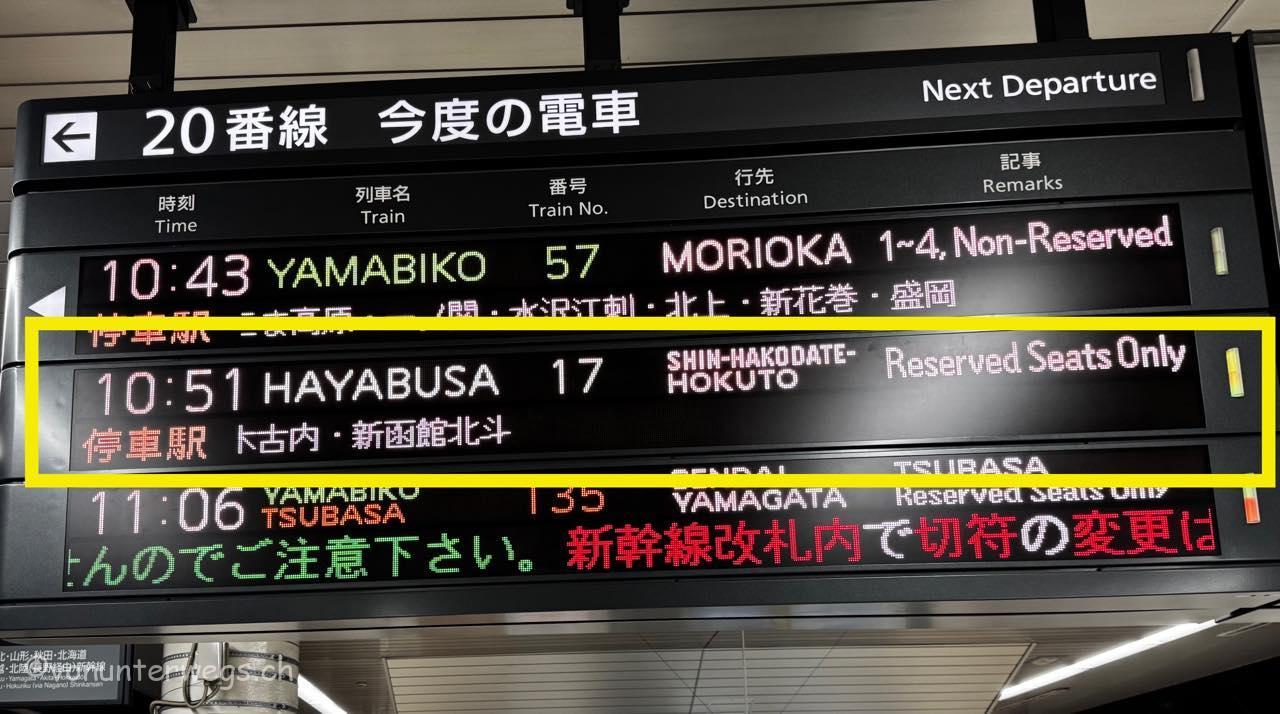 Nun standen wir also im Ueno Bahnhof und warteten auf unseren Zug nach Shin-Hakodate (Hokkaido), schon lange wollte ich (Hansi) mit einem dieser Züge fahren. Unser Zug war die Nr.…