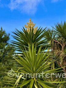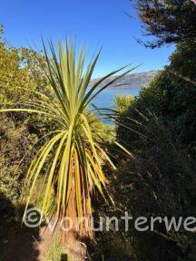 Nun hiess es Abschied nehmen von der Westküste, über einen Pass fuhren wir in die Marlborough Gegend, hier sind die ganzen Weingüter der Südinsel. Unsere letzte Uebernachtung vor der Ueberfahrt auf die Nordinsel war in Picton, von wo aus auch die Fähre losfuhr. Die Stadt haben wir zu Fuss erkundet und dabei diese wunderschöne blühende Palme vor die Linse bekommen, noch nie gesehen vorher.
