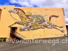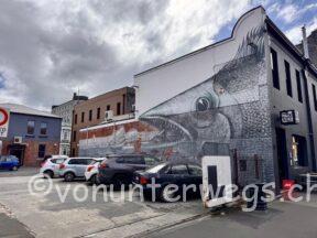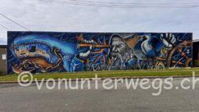 Die Innenstadt von Dunedin kann man gut zu Fuss erkunden, nach einem Cappuccino mit Zimtschnecken, schlenderten wir durch die Strassen und haben die tollen Street-Art Bilder bewundert.