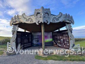 Der südlichste Punkt der Südinsel befindet sich am Slop Point, hier hat es eine tolle Informationstafel mit Maori Zeichen verschönert und alle Infos sind sowohl auf Englisch, wie auch auf Maori beschrieben, was üblich ist in Neuseeland.