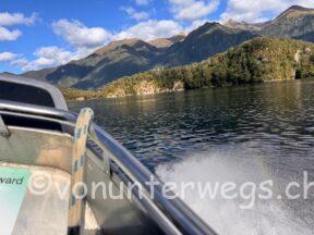 Unser Ziel war der Milfordsound, eine tolle Bucht, wo wir einen Bootsausflug bis zum Meer hinaus gemacht haben, mit eindrücklichen hoch aufragenden Felsen und Wasserfällen, sowie einigen Seelöwen.