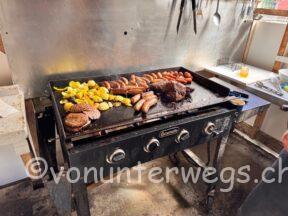 Bei der Meeresmündung sind wir ausgestiegen und nach einer kurzen Wanderung bei der einzigen Lodge in der Umgebung angekommen. Hier gab es ein leckeres BBQ, mit verschiedenem Fleisch, Würsten und Salaten.