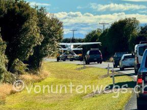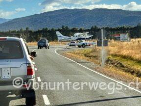 Weiter ging es via Te Anu ins Fijordland, wo wir doch glatt von einem Flugzeug Transport auf öffentlichen Strassen kurz aufgehalten wurden🤣.