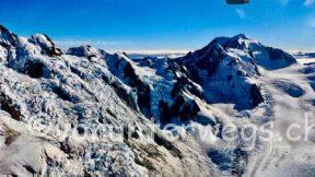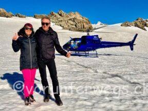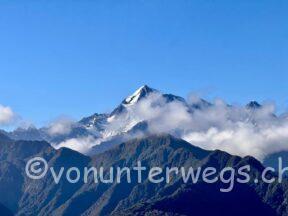 Am nächsten Tag stand ein weiteres Highlight unserer Südinsel Reise auf dem Programm und wie vorher gesagt, bei strahlendem Sonnenschein. Es ging hoch hinaus mit einem Helikopter, wo dieses Mal den Fox-, sowie den Franz Josefgletscher in seiner vollen Pracht zu Gesicht bekamen und als i-Tüpfelchen, sahen wir diesmal den Mount Cook/Aoraki in voller Pracht.