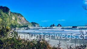 Via Hokitika Stadt fuhren weiter nordwärts, wo wir ein spezielles Erlebnis auf unserem tollen Uebernachtungsplatz direkt am Meer hatten. Am Abend sahen wir einen schönen Sonnenuntergang, am nächsten Morgen waren wir früh wach und konnten am gleichen Ort den Monduntergang beobachten🤭.