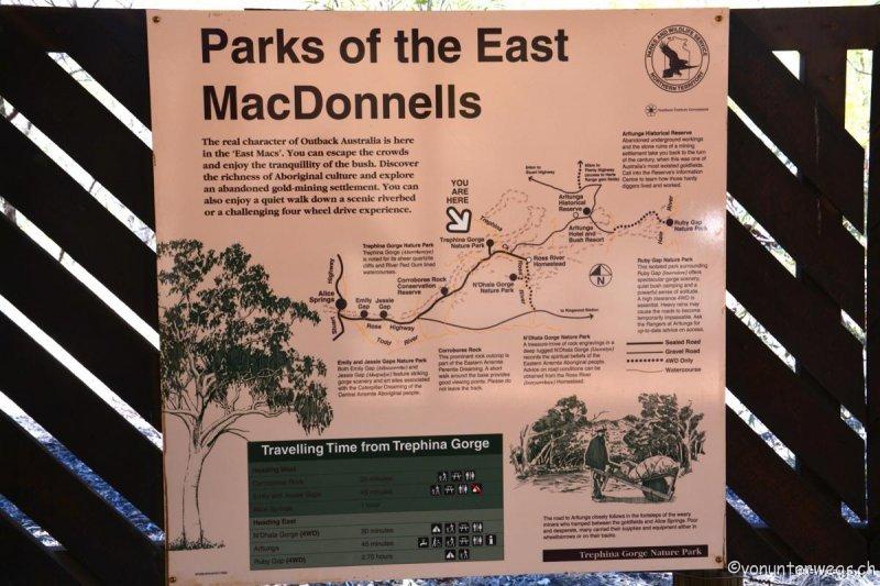 Den östlichen Teil der MacDonells haben wir in einem Tagesausflug von Alice Springs gemacht, da dies kilometermässig noch im Rahmen lag. Auf dem Weg dahin ist uns auf einer Gravelroad…