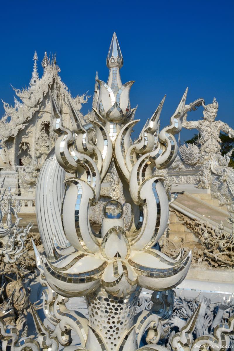 Der Tag erstrahlte in tiefem Blau und gefühlten 10 Grad, aber es waren 14 Grad, immer noch kalt genug ☃️. Heute stand der Besuch des weissen Tempels in Chiang Rai…