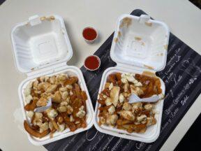 In Tadoussac wollten wir endlich mal eine Poutine essen, eine Spezialität der Region Quebec, das sind Pommes mit Käsebruch und darüber eine braune Sauce, dies von einem Imbisswagen an der Strasse, bei dem man angeblich einer der Besten geniessen kann, ist aber nicht so unseres😂.