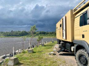 Endlich fanden wir wieder schöne Übernachtungsplätze, am Ufer des Sankt Lorenz Stromes war es wieder einfacher freizustehen.