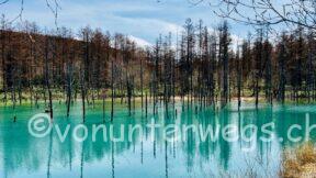Nach einem Stopp beim wunderschönen Shirogane Blue Pont (Aoiike), ging die Fahrt nach Ainu Kotan, das Dorf liegt im Osten Hokkaidos, an den Ufern des Akan-Sees, in dem noch immer mehr als 120 indigene Ainu leben.