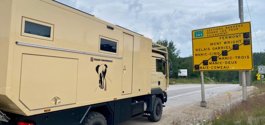 Am nächsten Tag ging es weiter Richtung Norden, direkt nach Manic 5 fängt die Schotterstrasse an und es kam, wie es kommen musste, es fing an zu schütten und Chaang bekam eine schöne Pattina.