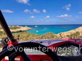 Im Norden der Insel fuhren wir auf der Küstenstrasse bis an die Grenze, wo es in den türkischen Teil von Zypern geht, leider konnten wir mit unserem Mietwagen nicht über die Grenze, aber wir fanden ein schönes Restaurant direkt am Meer wo wir zu Mittag gegessen haben.