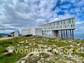 Unser nächstes Ziel war Fogo Island, wieder einmal durften wir eine Fähre nehmen, war aber eine kurze Ueberfahrt. Wir wollten uns das berühmte Fogo Island Inn Hotel aus der Nähe ansehen, es gilt als eines der teuersten Hotels in Canada (Startpreis pro Nacht ca. CA$2500 mit Vollpension, kommt auf die Saison an), im Jahr 2024 bekam es 3 Michelin Schlüssel.
