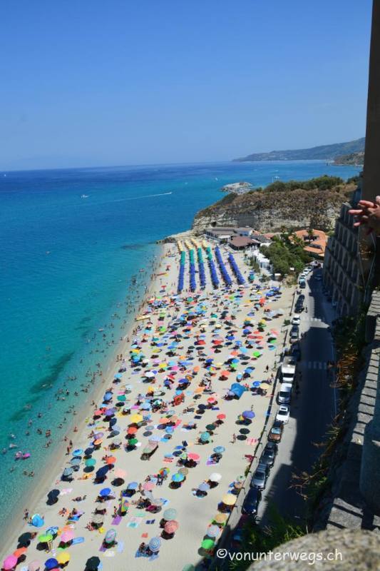Wer gerne baden geht, kommt hier auch auf seinen Kosten, allerdings sollte man sich eine Bucht ausserhalb suchen, denn der Badestrand von Tropea ist zwar schön, aber doch ein wenig überfüllt und die Preise für Liegen inkl. Parkplatz sind ziemlich gesalzen🤣.