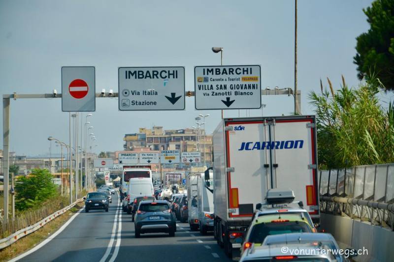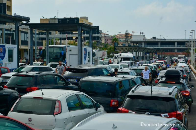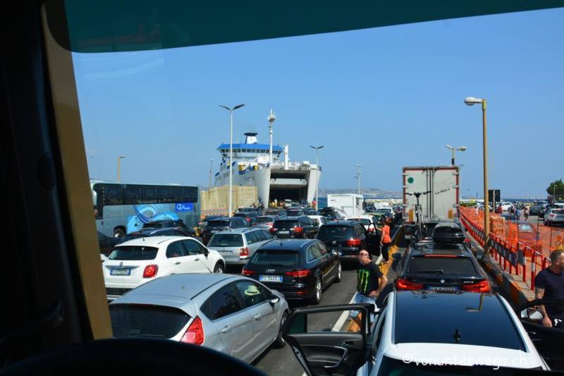 Der nächste Halt war Sizilien, aber dafür mussten wir lange in Villa San Giovanni anstehen, denn wir waren nicht die einzigen, die mit der Fähre übersetzen wollten, nach ca. 3 Stunden hatten wir es geschafft und Chaang stand im Bauch der Fähre.