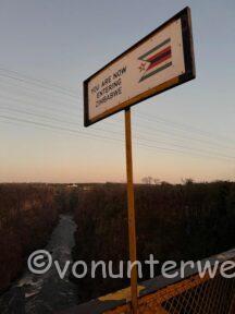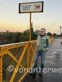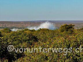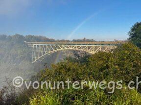 Nach einer kleinen Stärkung, spazierten wir mit dem Guide auf die Zambische Seite, von da hat man einen tollen Blick auf die Brücke und die dahinterliegenden Fälle.
